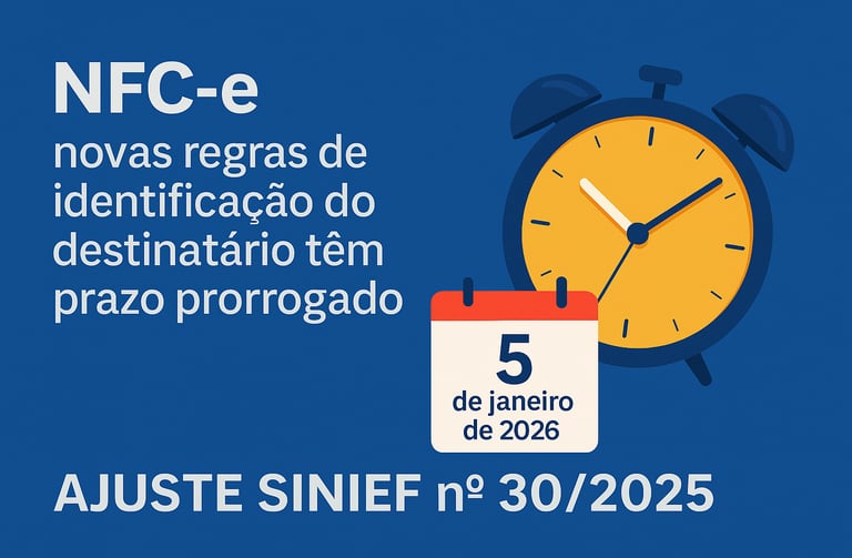 O Ajuste SINIEF nº 30/2025 prorrogou para janeiro de 2026 o prazo das novas regras da NFC-e sobre identificação do destinatário. Entenda as mudanças.